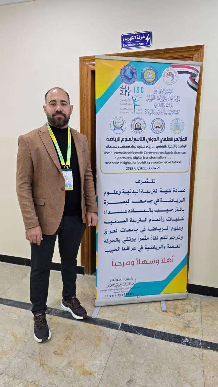 “مقارنة بين أسلوب التعليم التقليدي وأسلوب التعليم القائم على الواقع الافتراضي في اكتساب مهارة الضرب الساحق بالكرة الطائرة للطلاب”، والذي تناول أثر توظيف التقنيات الرقمية الحديثة، ولا سيما تقنيات الواقع الافتراضي في تحسين العملية التعليمية وتطوير المهارات الحركية لدى الطلبة مقارنة بالأساليب التعليمية التقليدية.