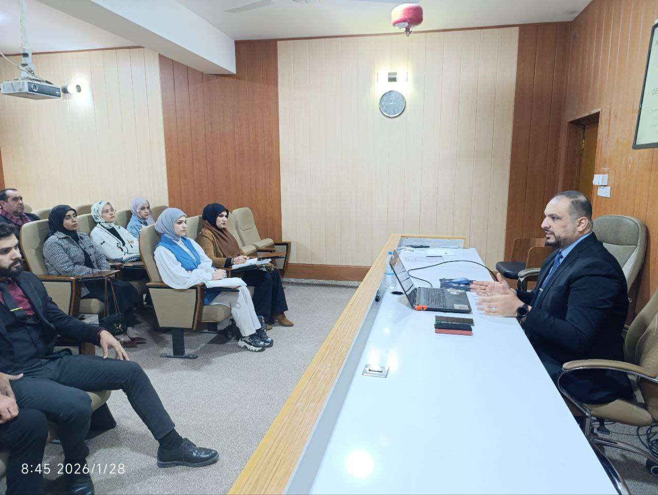 وفي ختام المحاضرة، فُتح باب النقاش أمام الطلبة لطرح الأسئلة وتقديم المداخلات، بما أسهم في إثراء المحاور العلمية وتعميق الفائدة المعرفية.