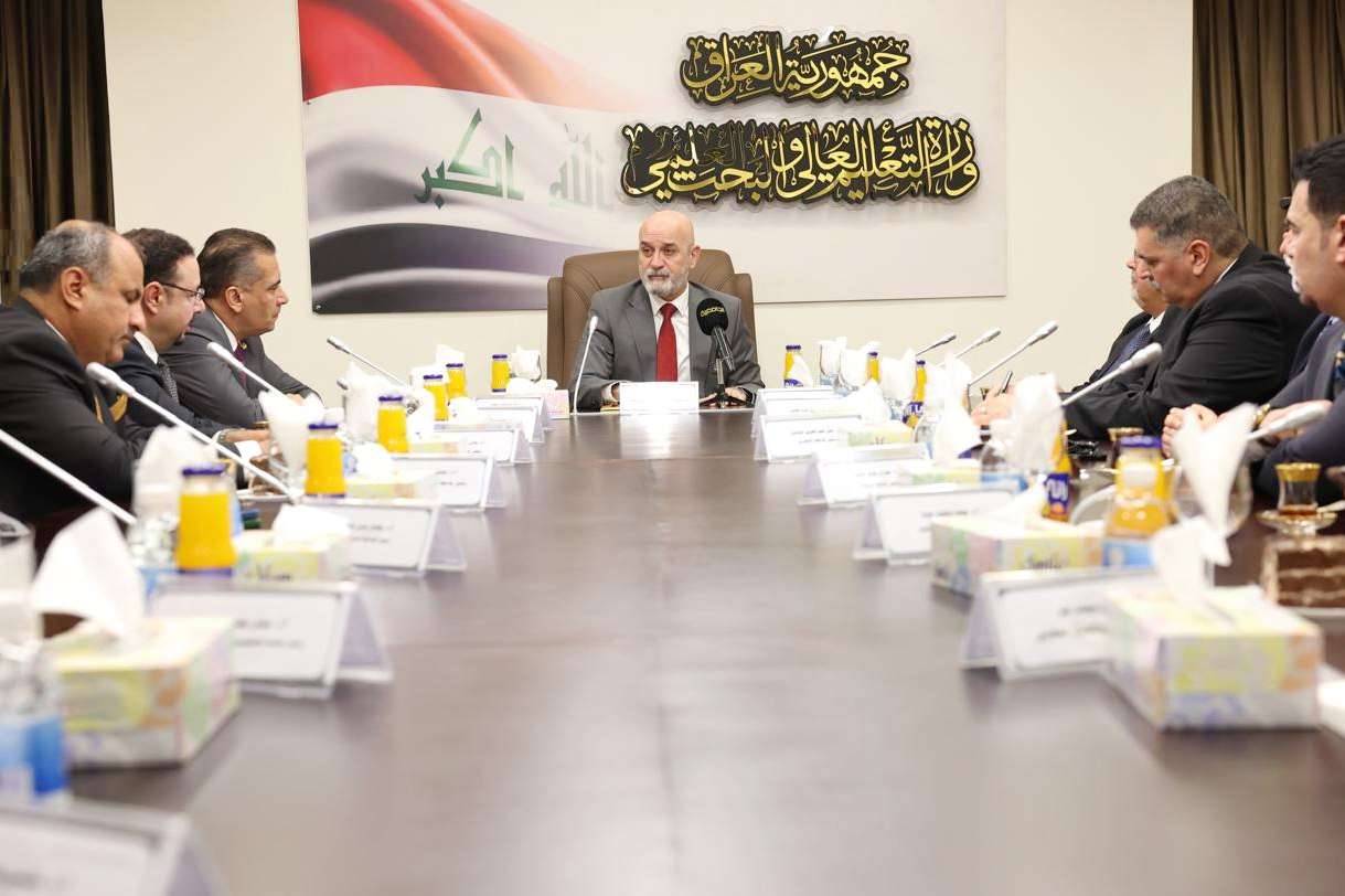 واستمع الدكتور العسكري إلى طروحات السادة رؤساء الجامعات بشأن تطوير المهارات والقدرات العلمية والإدارية للملاكات التدريسية والوظيفية مؤكدا أن الحفاظ على حقوقهم واستحقاقاتهم وبناء القدرات يمثل ركيزة أساسية في مسار التطوير المؤسسي المستدام.
