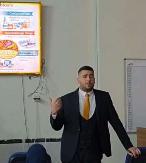 الندوة التي حاضر فيها الطالب في المرحلة الرابعة طه سلمان لطيف عبد الله سلطت الضوء على تأثير اختلال التوازن الميكروبي في الفم على الصحة العامة، والعلاقة بين صحة الفم والأمراض الجهازية، وآليات الالتهاب والاستجابات المناعية وتأثيرها على الأعضاء البعيدة كالقلب والدماغ.