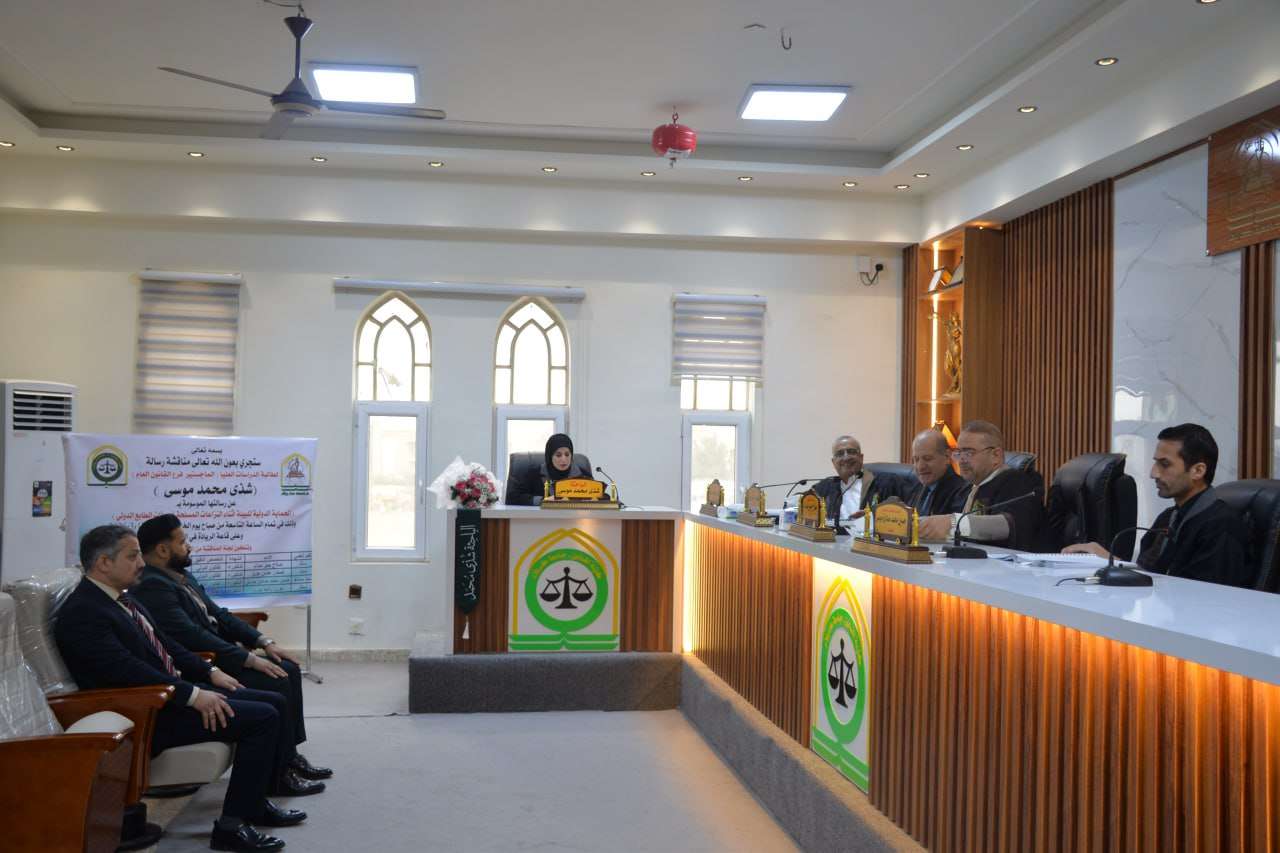 ناقشت رسالة ماجستير في كلية القانون بجامعة كربلاء “الحماية الدولية للبيئة أثناء النزاعات المسلحة غير ذات الطابع الدولي”، تقدمت بها الطالبة شذى محمد موسى.
