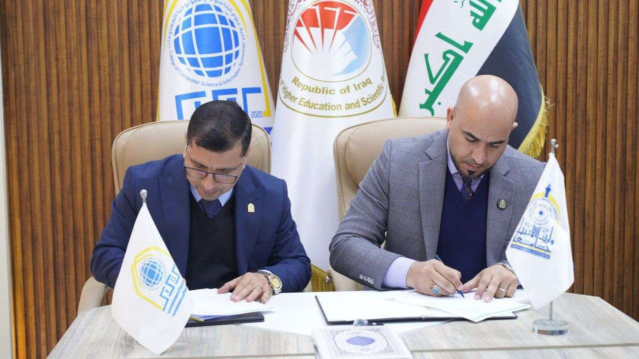 In the context of strengthening academic cooperation and exchanging scientific expertise, the College of Computer Science and Information Technology at University of Kerbala signed a twin and joint cooperation agreement with the College of Computer Science and Information Technology at Warith Al-Anbiya University.