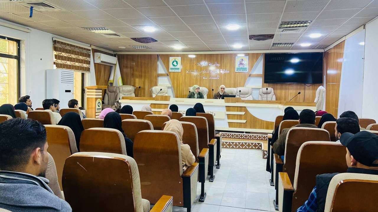 The College of Education for Humanities at University of Kerbala organized a scientific seminar on “Digital Sleeplessness: Its Psychological Causes Between Prevention and Treatment.” The seminar featured presentations by Dr. Saad Jawad Al-Jubouri, Dr. Nada Rahim Al-Rikabi, and Dr. Basma Burhan Al-Shafi’i.